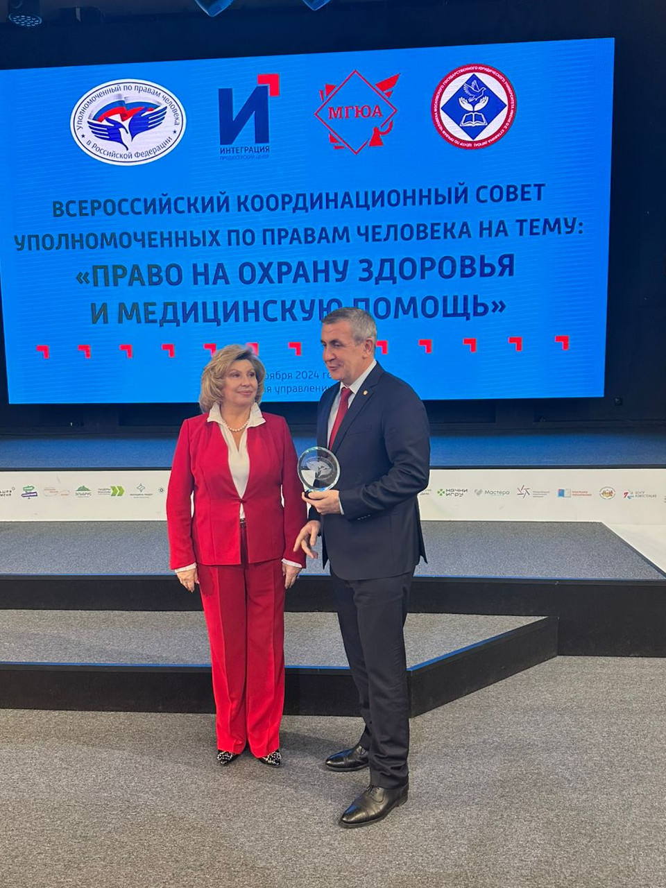 Хочу поблагодарить Татьяну Николаевну Москалькову, которая накануне наградила меня Почетным знаком — Стеллой Уполномоченного по правам человека в Российской Федерации.